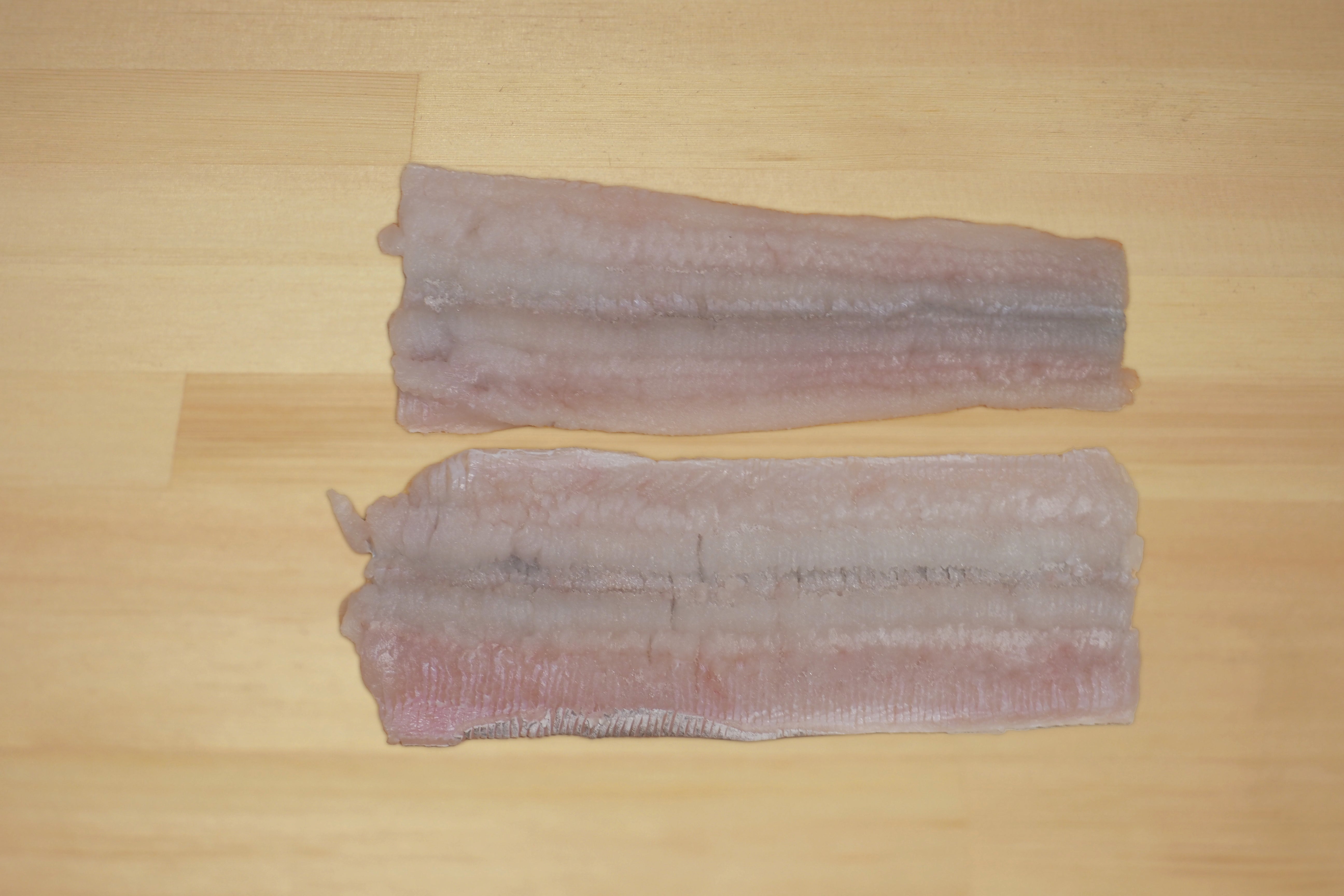 活締めしたハモはすぐに自社加工場に搬入し、洗浄、ヒレ取り、骨切りを行います。