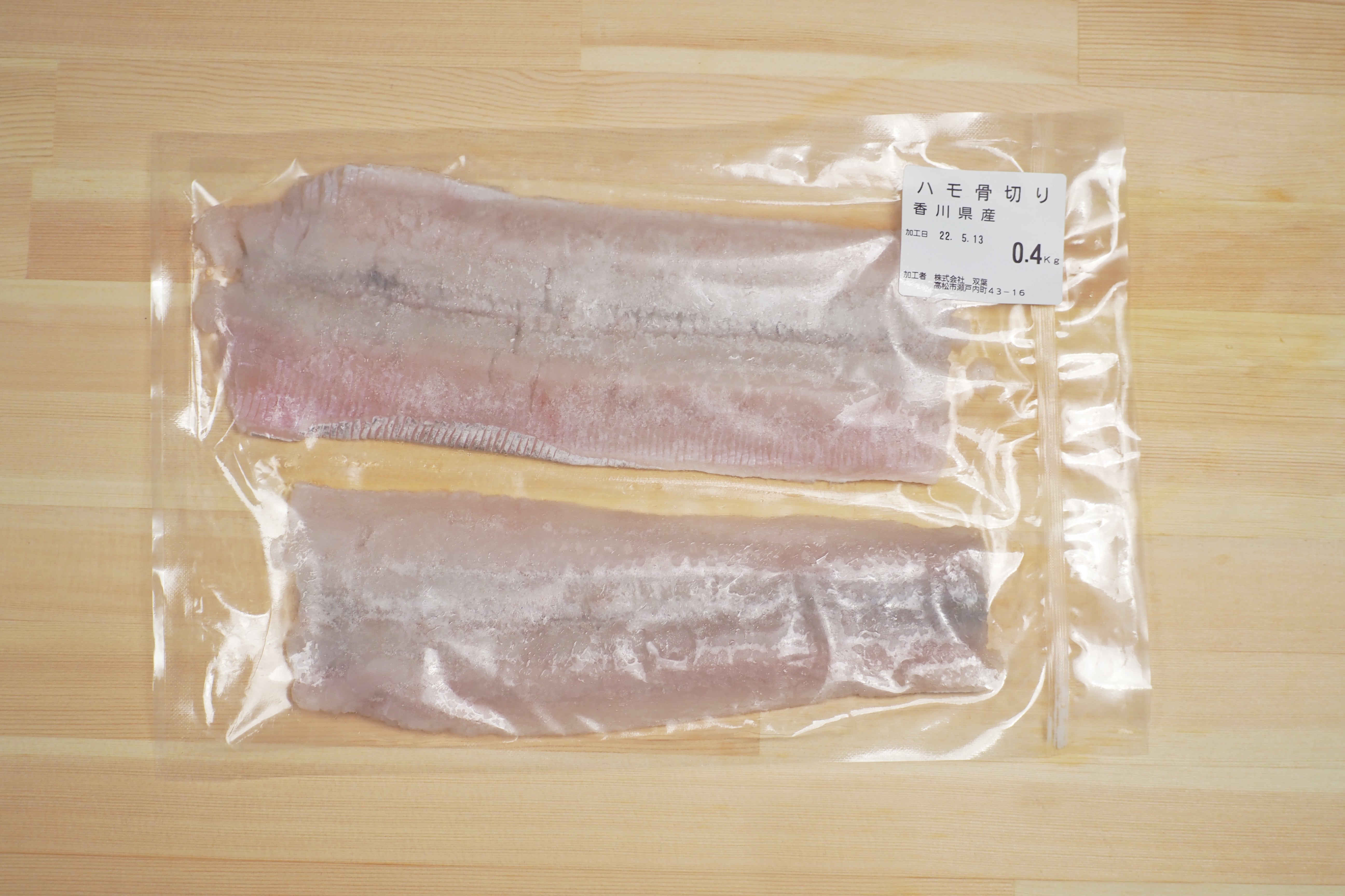 適当なサイズにカットし、天ぷらやハモしゃぶ、ハモすきなどでお楽しみいただけます。