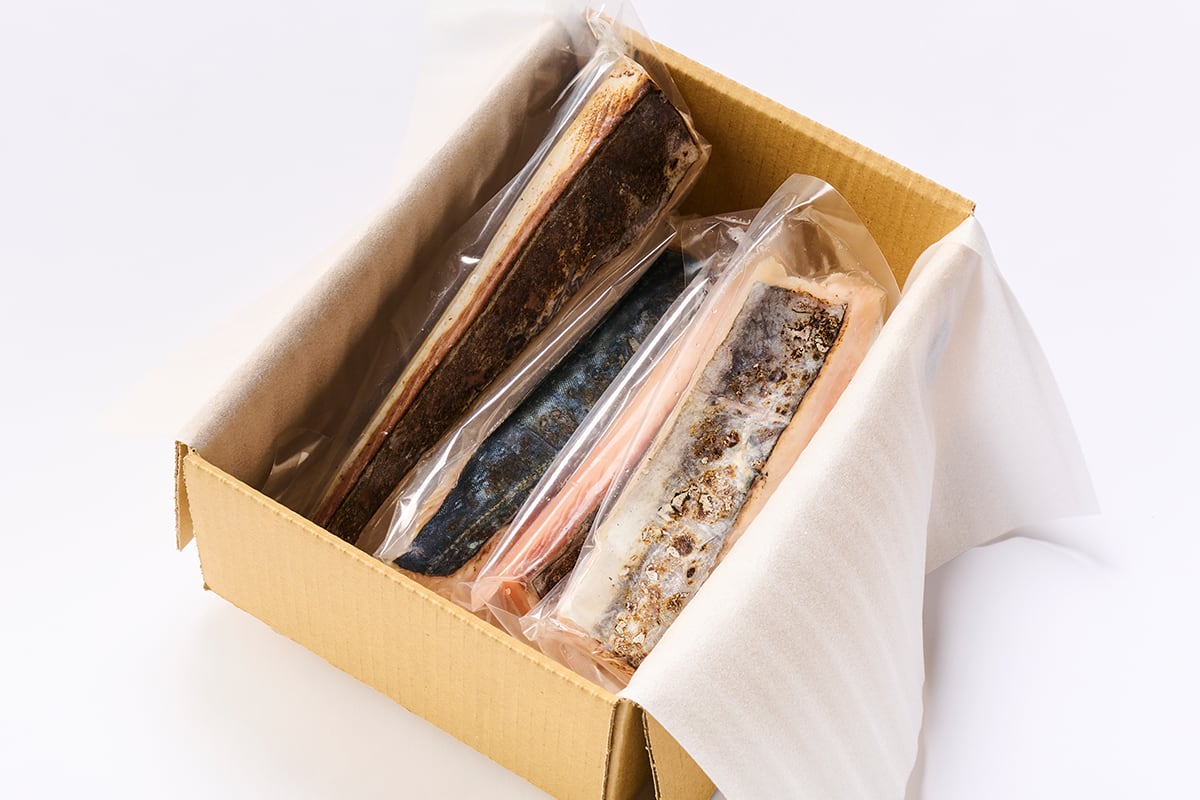 扱いが難しいサワラをおいしく食べていただくために機械ではなく、熟練の職人の手で1尾1尾手切りしています。1尾1尾、身の柔らかさや状態に合わせて、丁寧に包丁を入れる事でしっかりとした食感を保つことができます。