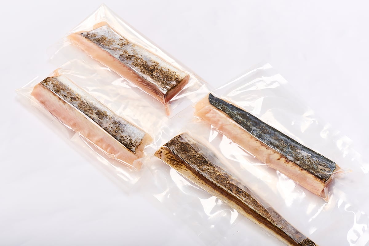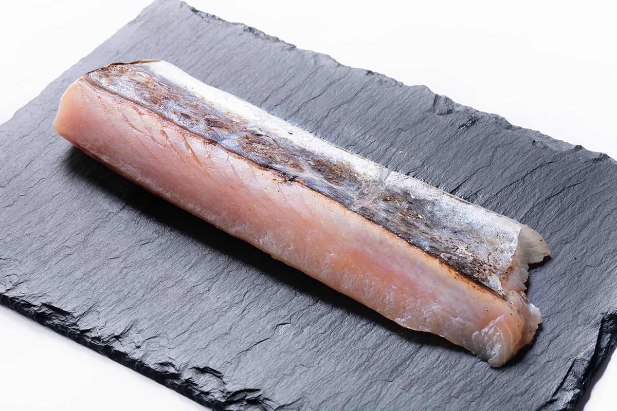 香川県とその近隣の瀬戸内海で獲れたサワラを熟練の職人による手切りで丁寧にカット、皮目を香ばしく炙ってマイナス30℃の急速凍結で鮮度と旨味を閉じ込めたサワラの炙りフィレです。